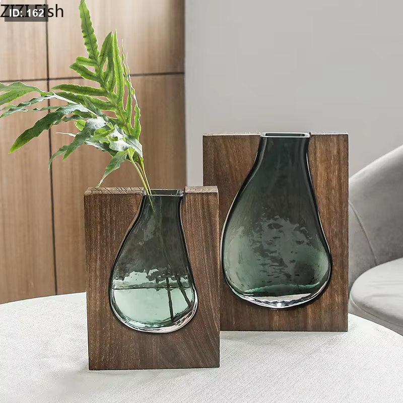 فازة بيضاوية اطار خشب طبيعي