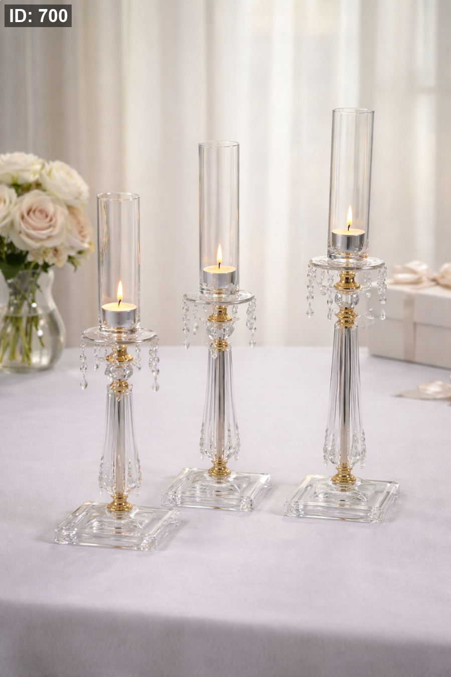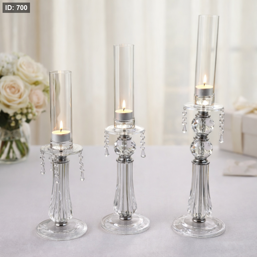 طقم شمعدان اكريليك فضي